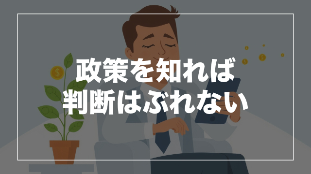 そのため、政策の変化を理由に投資そのものを避けるのではなく、「環境が変わったなら戦い方を変える」という視点が重要になります。