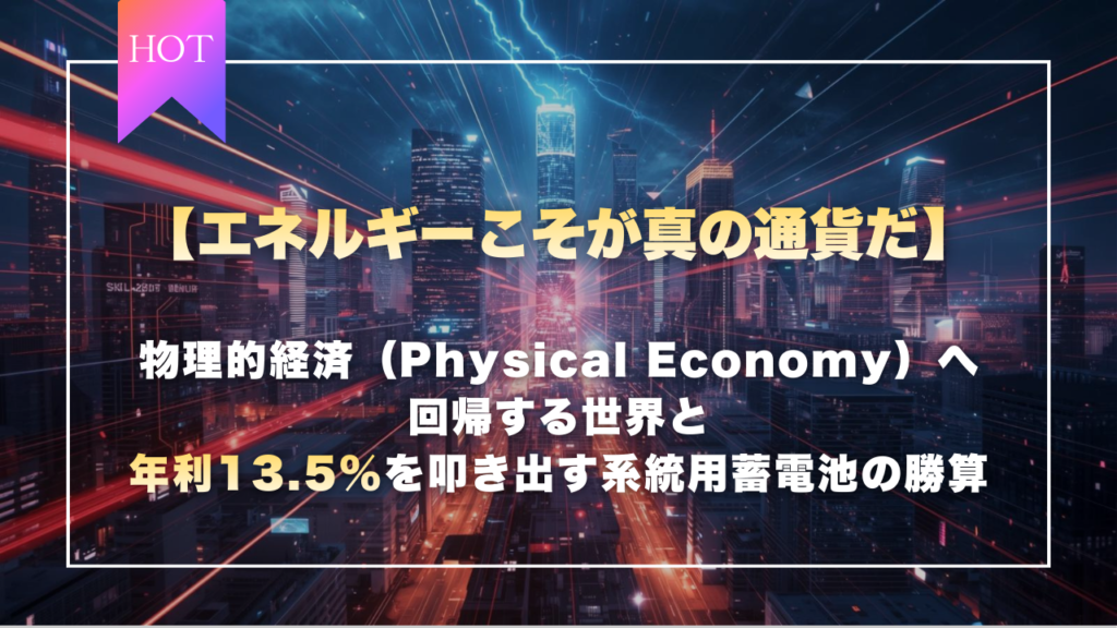 「エネルギーこそが真の通貨だ」物理的経済(Physical Economy)へ回帰する世界と、年利13.5%を叩き出す系統用蓄電池の勝算
