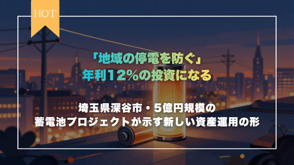 「地域の停電を防ぐ」が年利12%の投資になる。埼玉県深谷市・5億円規模の蓄電池プロジェクトが示す新しい資産運用の形